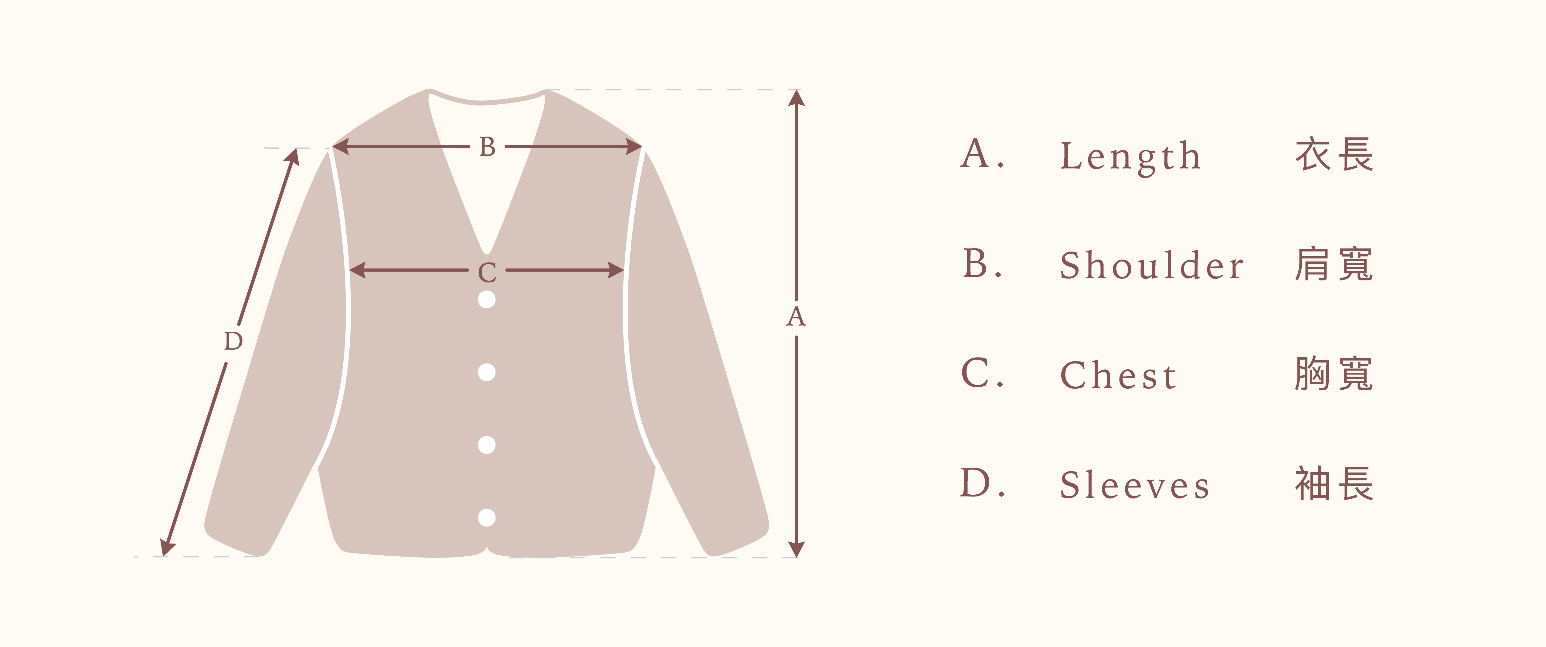 所有貨品均由人手量度,可能與您的測量結果略有1-3cm差異